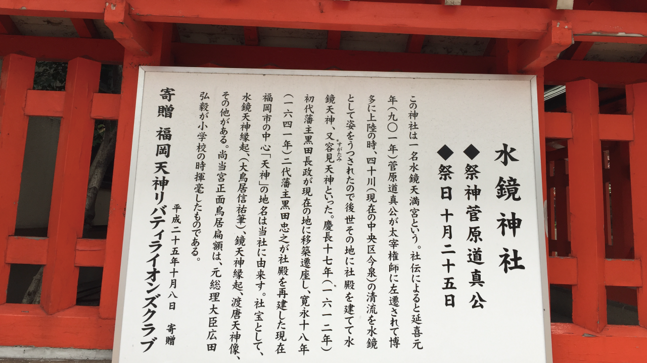 そう、菅原道真が立ち寄った水鏡天満宮に目を向けてみましょう。