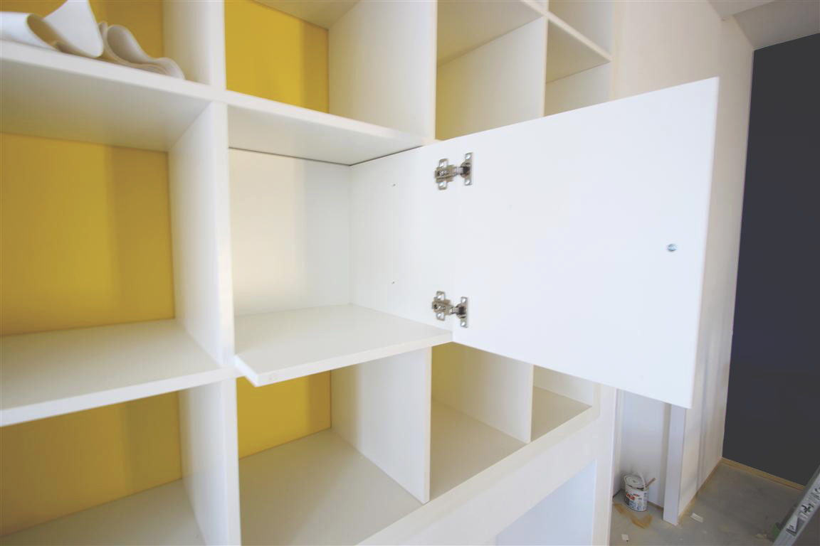 さて、貸し会議室の施工の中でも特筆すべきはこちらのはめ込み型の棚でした。